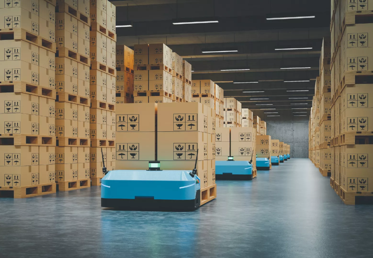 These robots can move around freely, carrying products from one spot to another. They can easily adapt to different tasks, like bringing materials to a packing station or moving finished goods to the shipping area.