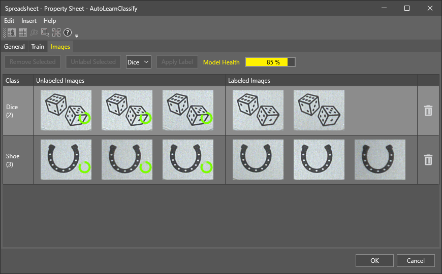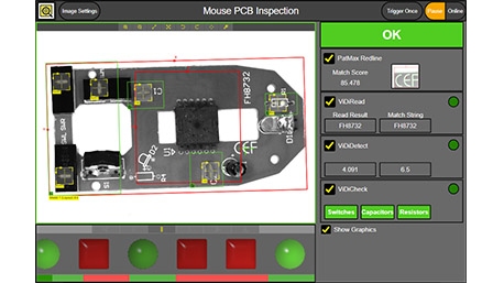 The In-Sight ViDi software uses an intuitive In-Sight spreadsheet interface to simplify application development and streamlines factory integration with a full I/O and communications function set. It also enables the ability to combine traditional Cognex rules-based vision tools (like PatMax Redline) and deep learning tools in the same project, leading to quicker deployments and faster cycle times.