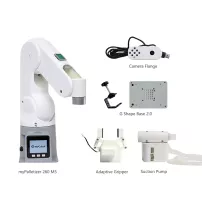 The inclusion of the Adaptive Gripper, Flat Base, and G Shape Base further enhances its versatility, enabling the myCobot 280 to handle objects of varying shapes and sizes, and providing a stable foundation for precise operations. Additionally, the Artificial Intelligence Kit allows for advanced AI and machine learning applications, offering the potential for sophisticated automation solutions. This All-in-one Suite stands out as a unique option for industrial automation, providing a comprehensive and customizable toolkit for various applications across different industries.