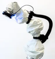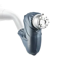 The three-part ProSuit FLEX robot protective cover offers great flexibility in robot positions thanks to the highly elastic, coated polyester and the multi-part design. The robot protective jacket is extremely tear and wear-resistant and is suitable for protecting the UR robot gears in the ceramic processing industry, in painting applications and in machining centers when the requirement for a large work area and complex robot poses or maximum possible freedom of movement of the robot is required.