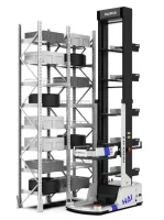 The A42-series offers picking and storage of cases up to a height of 5.2m (17.1 feet). The series consists of four models which handle a wide range of case dimensions and types. Compatible plastic tote and carton box in different sizes.
