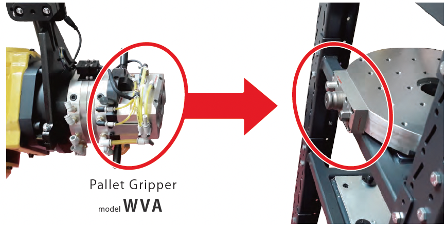 Moment-Resistible Gripper Suitable for Pallet Transfer. Side approaching enables to save space for fixture stock.