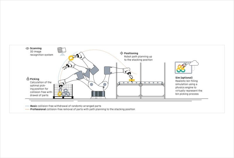 Liebherr Group's Bin Picking Cells are designed for automated handling of randomly arranged parts in transport containers. They leverage Liebherr's proprietary LHRobotics.Vision software, which integrates machine vision, gripping systems, and robot path planning to deliver a reliable and efficient bin picking solution. This comprehensive approach ensures successful automation by addressing the complexities involved in part detection and manipulation.