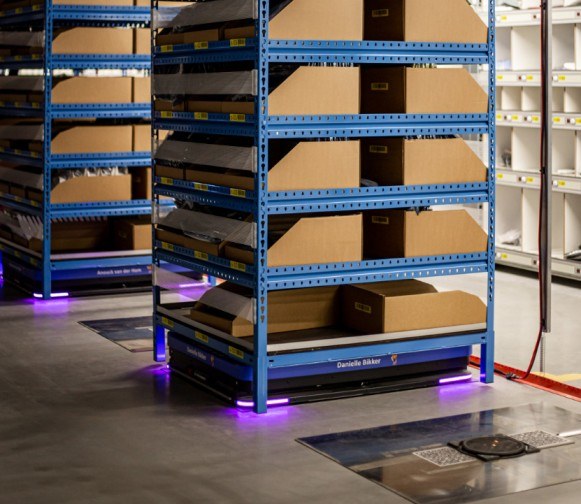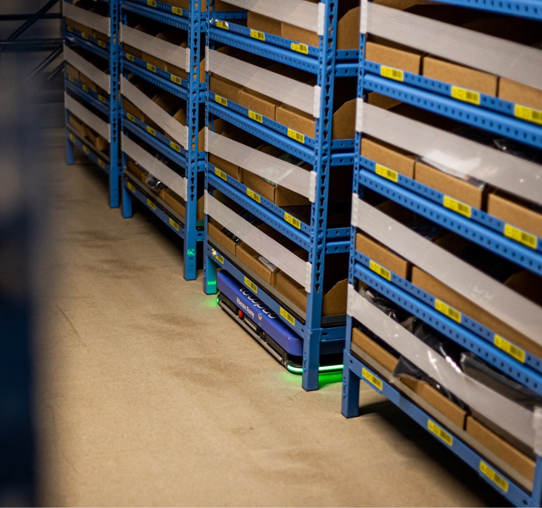 Goods are retrieved from storage and autonomously transported by Lowpads to the operator that executes the picking.