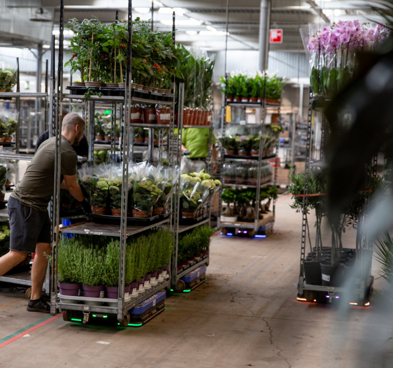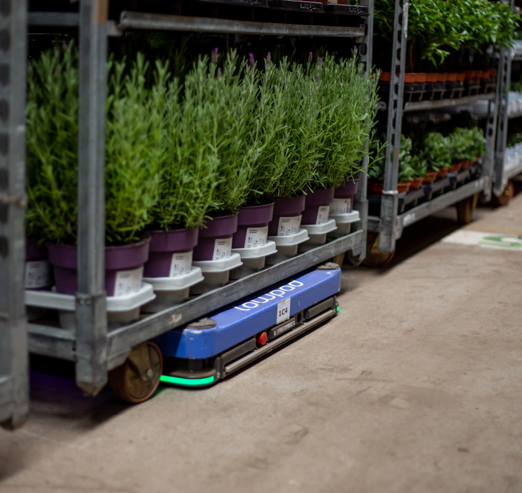 Goods are retrieved from storage and autonomously transported by Lowpads to the operator that executes the picking.