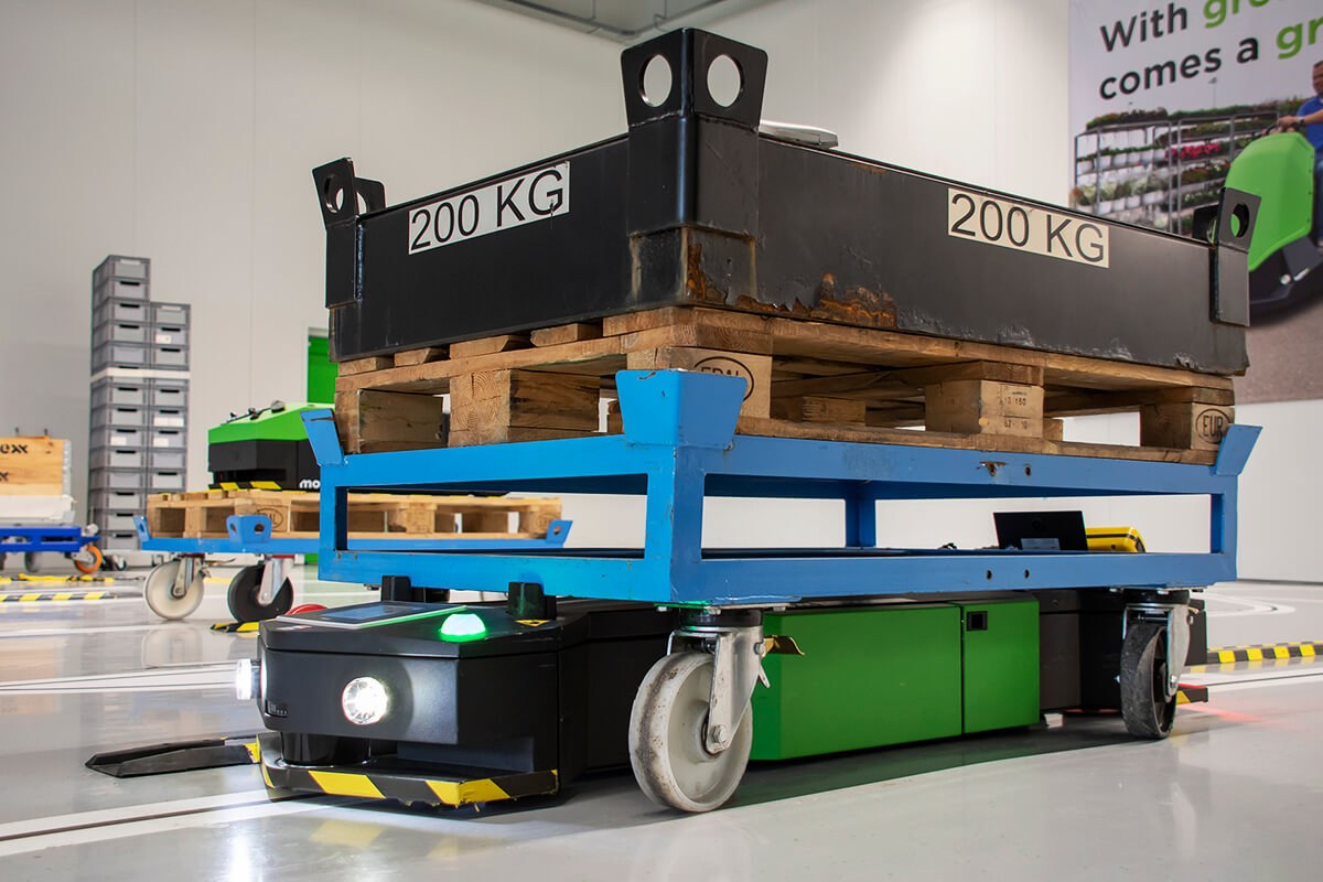 The AGV1000-UnderRider is capable of easily moving 1000 kg loads autonomously.
