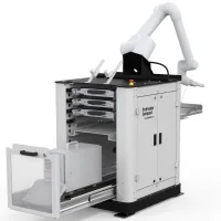 The RB Base is designed to store the robot cabinet and associated cobot tooling cabinets for example, a DC Tool. It is temperature regulated to avoid overheating and its avoids electrical components being exposed.
