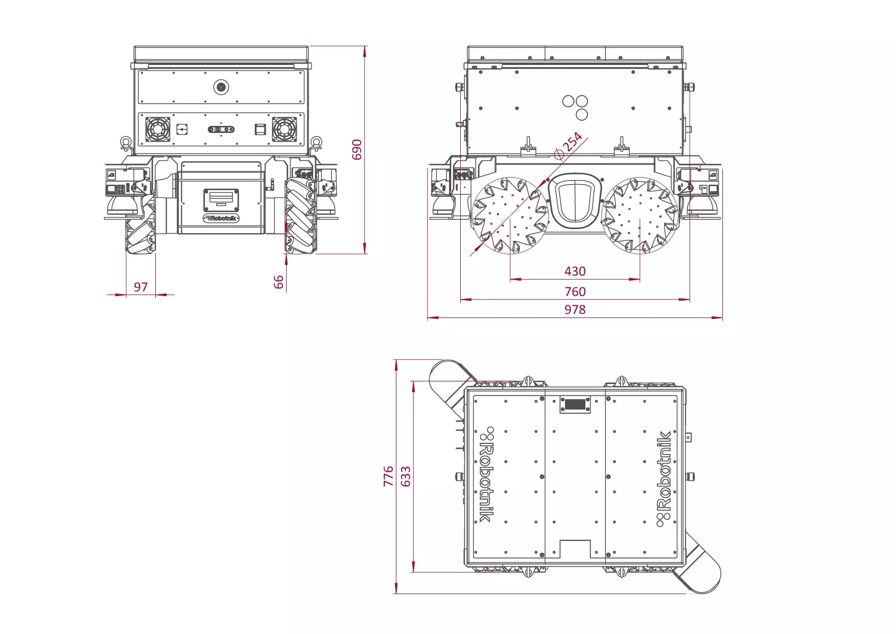 The Robotnik RB-KAIROS is an autonomous mobile robot (AMR) specifically designed for indoor applications, particularly in logistics and industrial settings. With a payload capacity of up to 250 kg, it efficiently transports materials in confined spaces, thanks to its compact, steel-framed design. Its omnidirectional Mecanum wheels allow for versatile, multidirectional movement, making navigation agile and responsive in cluttered environments, while maintaining stability and control during operations.