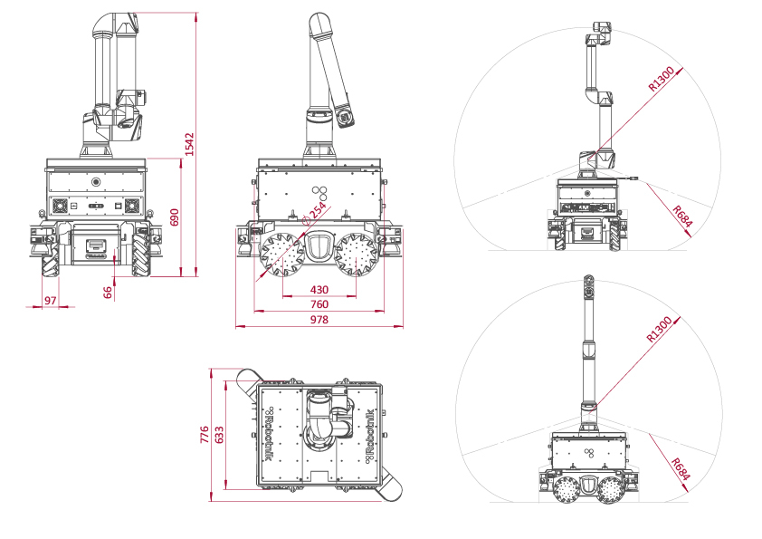 The RB-KAIROS+ features omnidirectional movement facilitated by Mecanum wheels, allowing precise navigation and mobility even in confined industrial environments. Its localization system, powered by SLAM, ensures accurate positioning, while safety features, including dual 2D safety scanners and an RGBD camera, allow it to operate safely around human workers. The base has a payload capacity of 212 kg, making it suitable for transporting heavier items alongside performing robotic arm tasks.