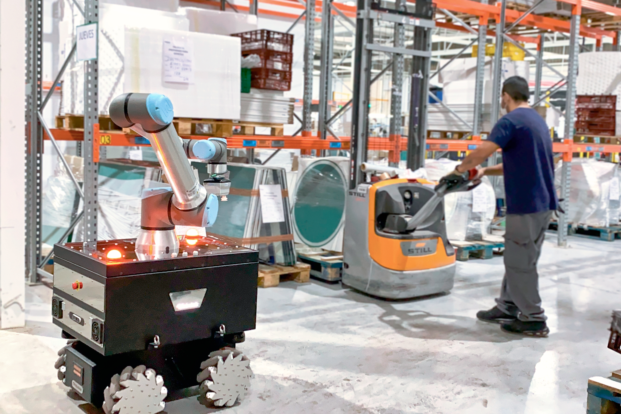 4. Large-Part Handling: With its UR e-Series arm and mobile platform, the RB-KAIROS+ supports operations like screwing, drilling, or polishing large parts, extending its utility to tasks that require precision across extended workspaces.