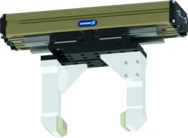 Narrow 2-finger parallel gripper with large stroke.