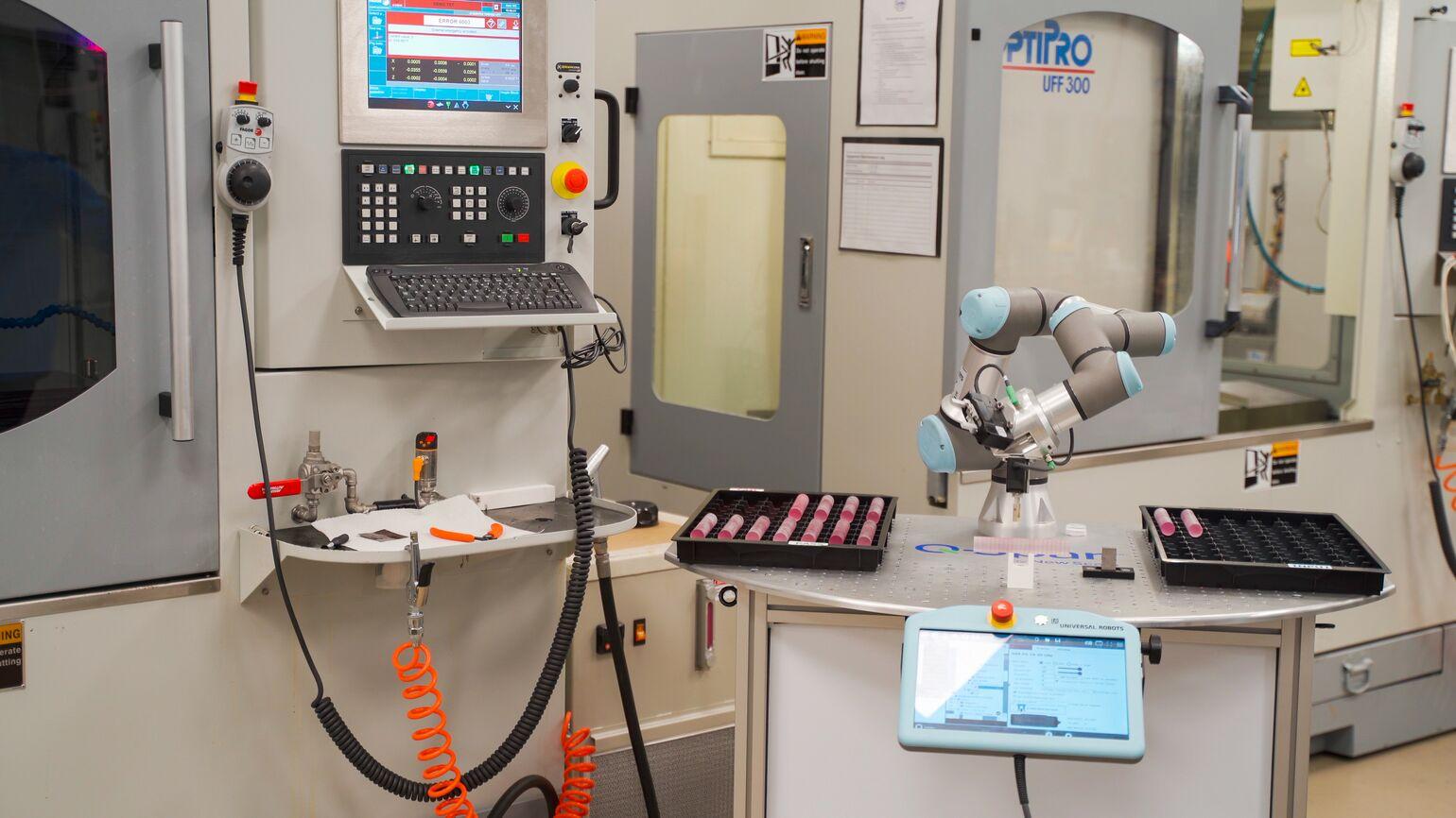 The UR3e is well-suited for testing and inspection tasks where high accuracy is essential, such as inspecting and measuring parts for quality control. It can also be used for machine tending tasks, such as loading and unloading parts from machines or conveyors.