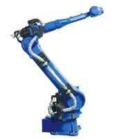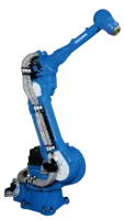 The GP110 is a compact 6-axis industrial robot with 110 kg payload, 2236 mm reach and excellent repeatability of +/- 0.03 mm. Equipped to handle high payloads for heavy part processing, the powerful six-axis GP110 robot increases productivity for a wide selection of tasks. While high moment and inertia ratings support large and heavy applications, exceptionally quick axis speeds and acceleration capabilities reduce cycle time. The compact design enables high-density robot placement in workcells. Pre-wired with sognal and pneumatic lines, the high-speed GP110 offers simple installation, easy operation and minimal maintenance for increased production output.